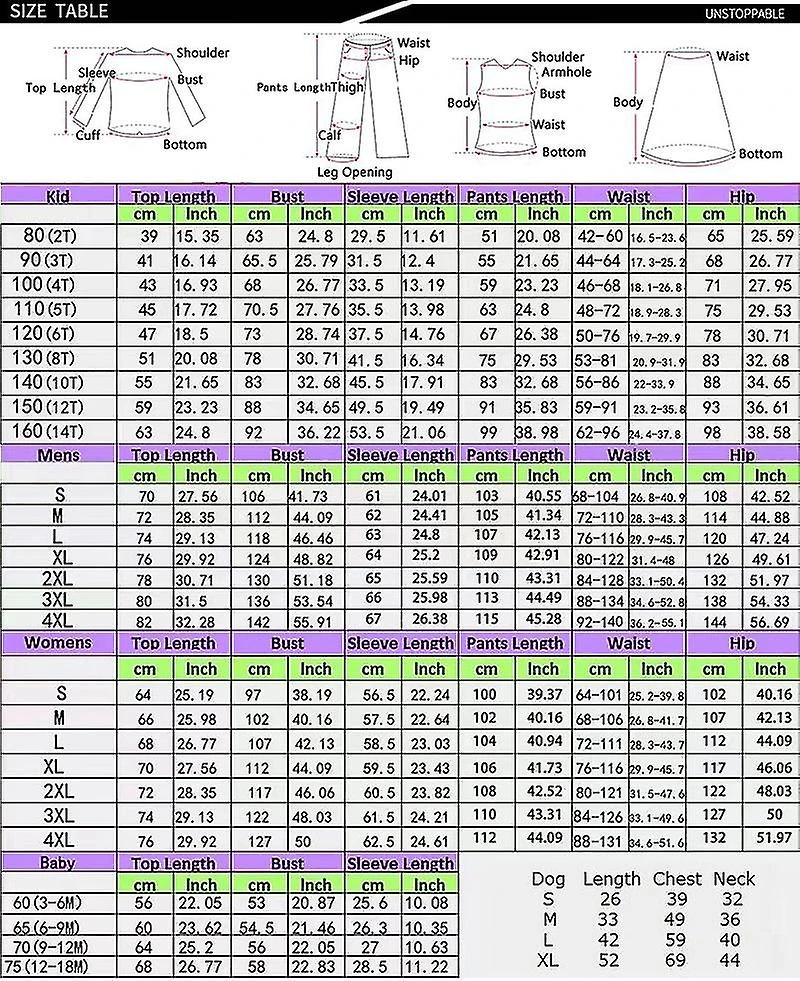 1.Adults Size:S M L XL XXL 3XL 4XL