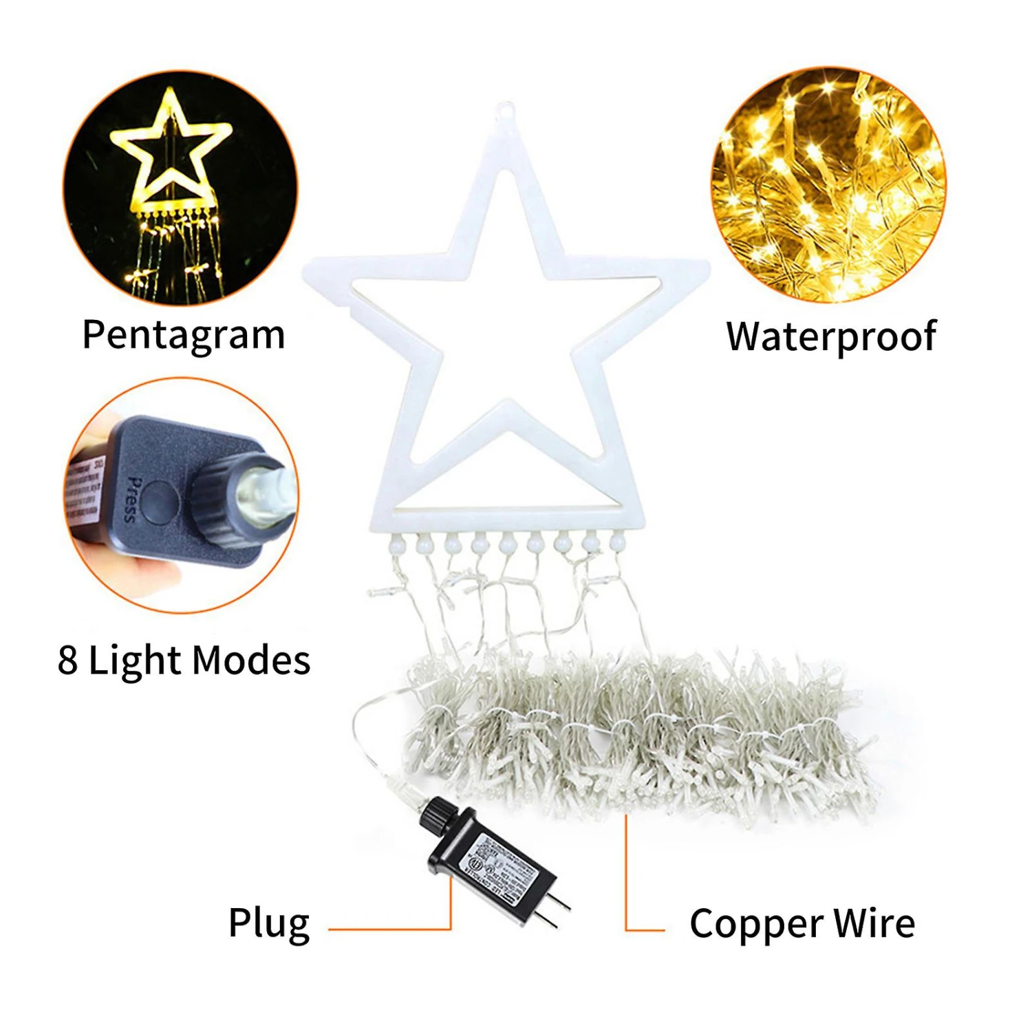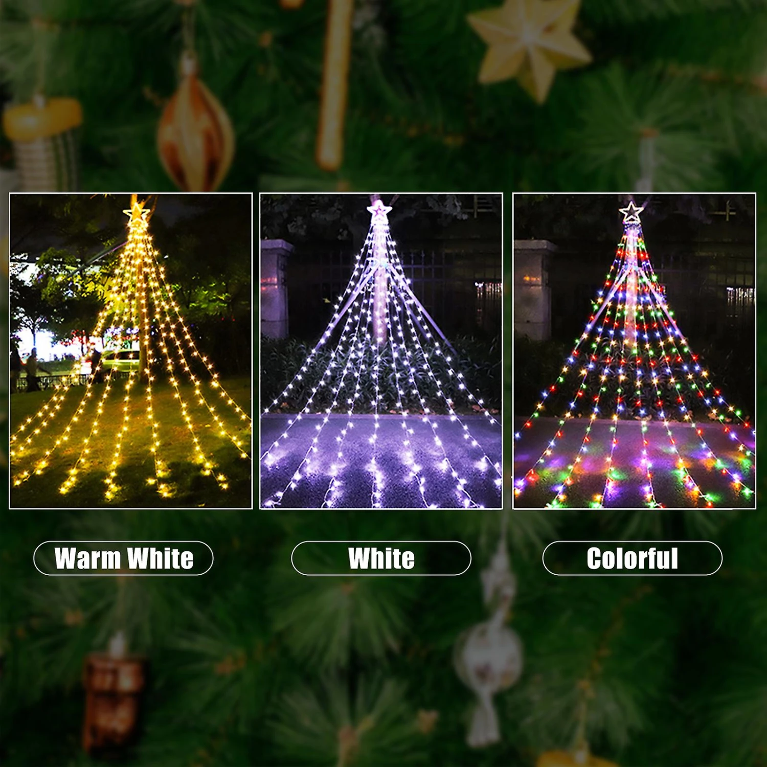 The LED waterfall lights are practical and can fit different occasions, moods, feelings, holidays, festivals, and anniversaries. They come in three light color options: Warm White, White, and Colorful. The lights are made with ABS and copper wire lamp material, ensuring their durability. The power consumption is 15W and the input voltage is 30V. The cable length is 5m / 16.4ft and the string light length is 3.5m / 11.4ft. The lights have 8 different modes to choose from, including Always on, Continuous, On and Off, Flashing, Wave, Slow Flashing, Fast Flashing, and Dream. They are perfect for creating a festive and joyful atmosphere.