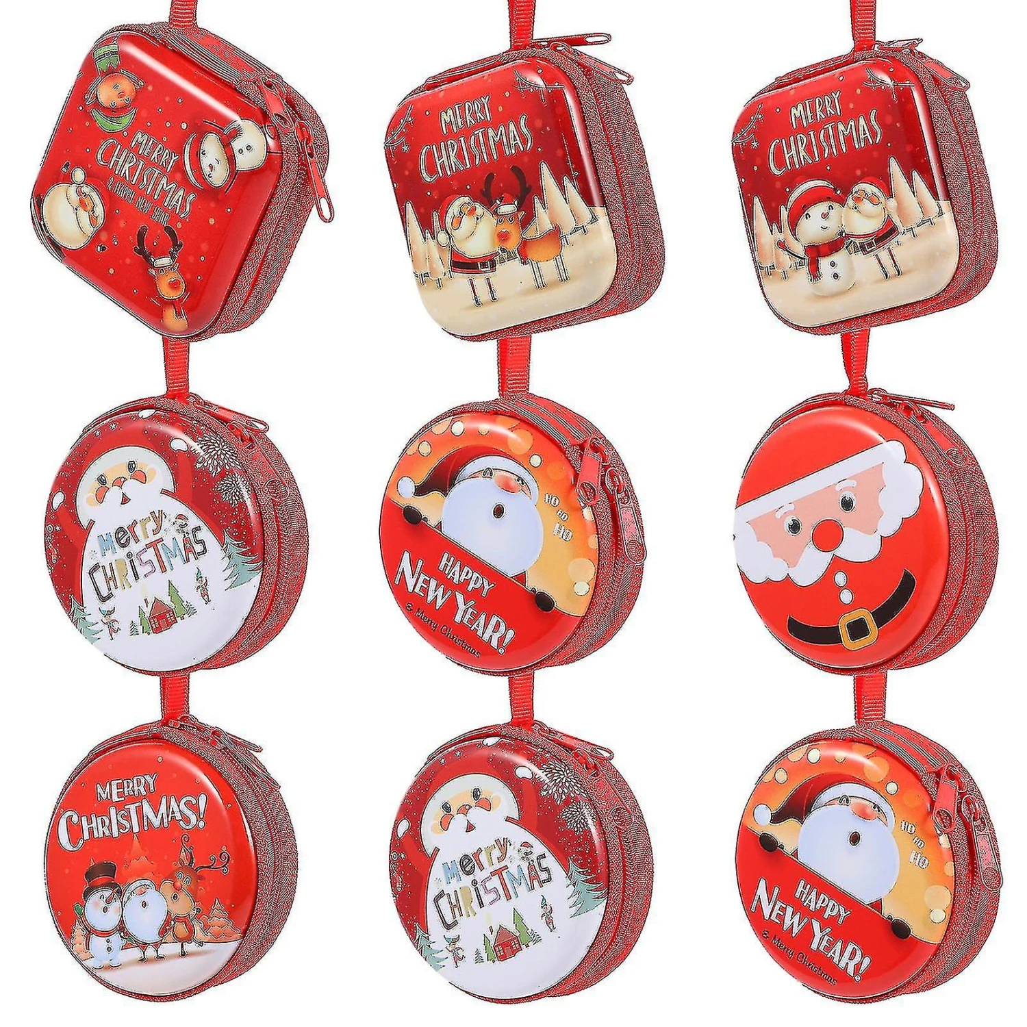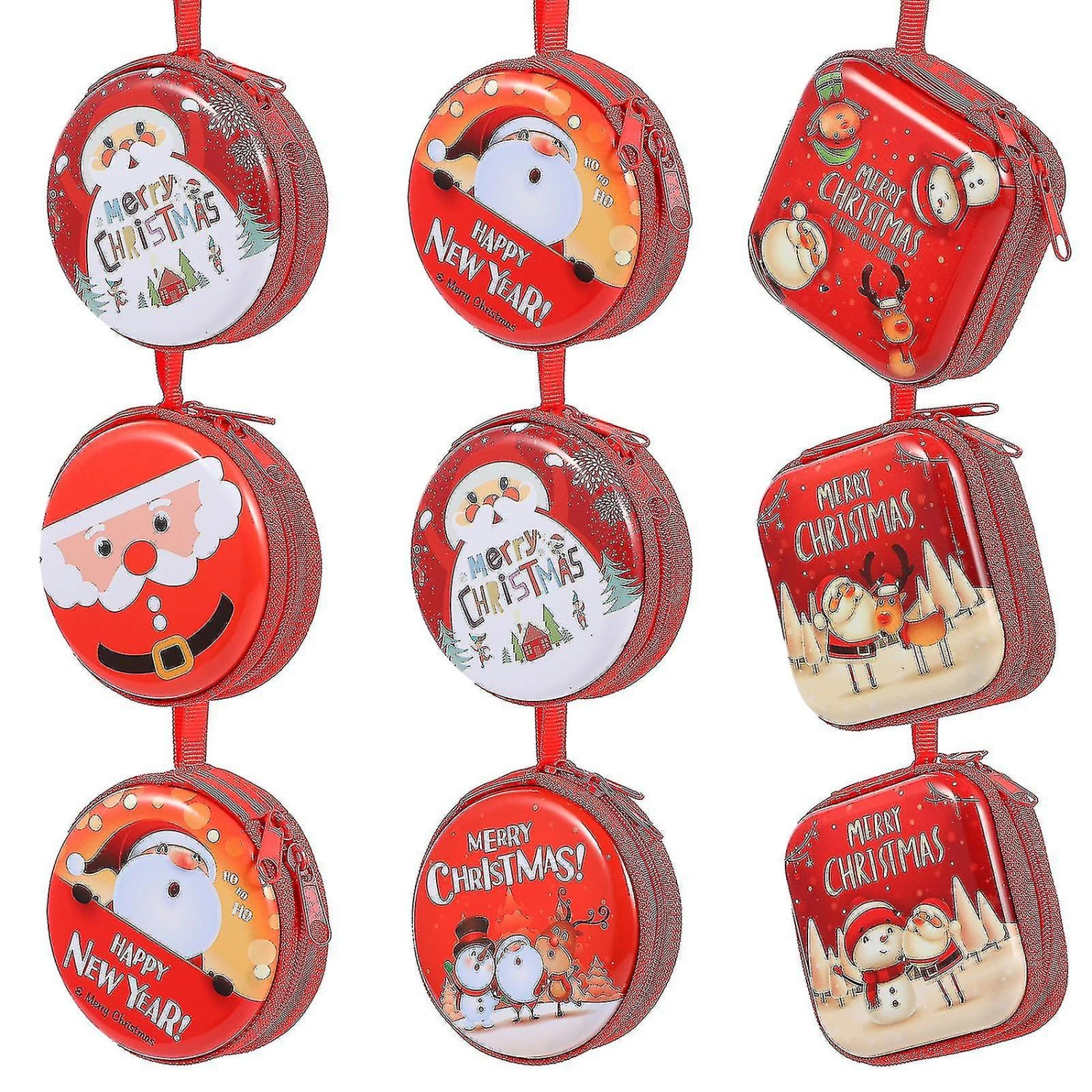 – Color: Random._- Material: Iron._- Size: About 7x7x3.3cm/ 2.75×2.75×1.3 inch._- Made of high quality, sturdy iron material, it is durable for long lasting time use._- Design with Christmas elements, for Christmas decoration, enhances the festive atmosphere._- Light weight, chic and decorative, the compact and stylish Christmas candy box is your best choice._- Fill each box with coins , mints or any special goodies you would like to present to the party guests._- The Christmas coins boxes can be as portable casual boxes, they are really high cost-performance and definitely would be your first choice.Packing list9 x money boxes