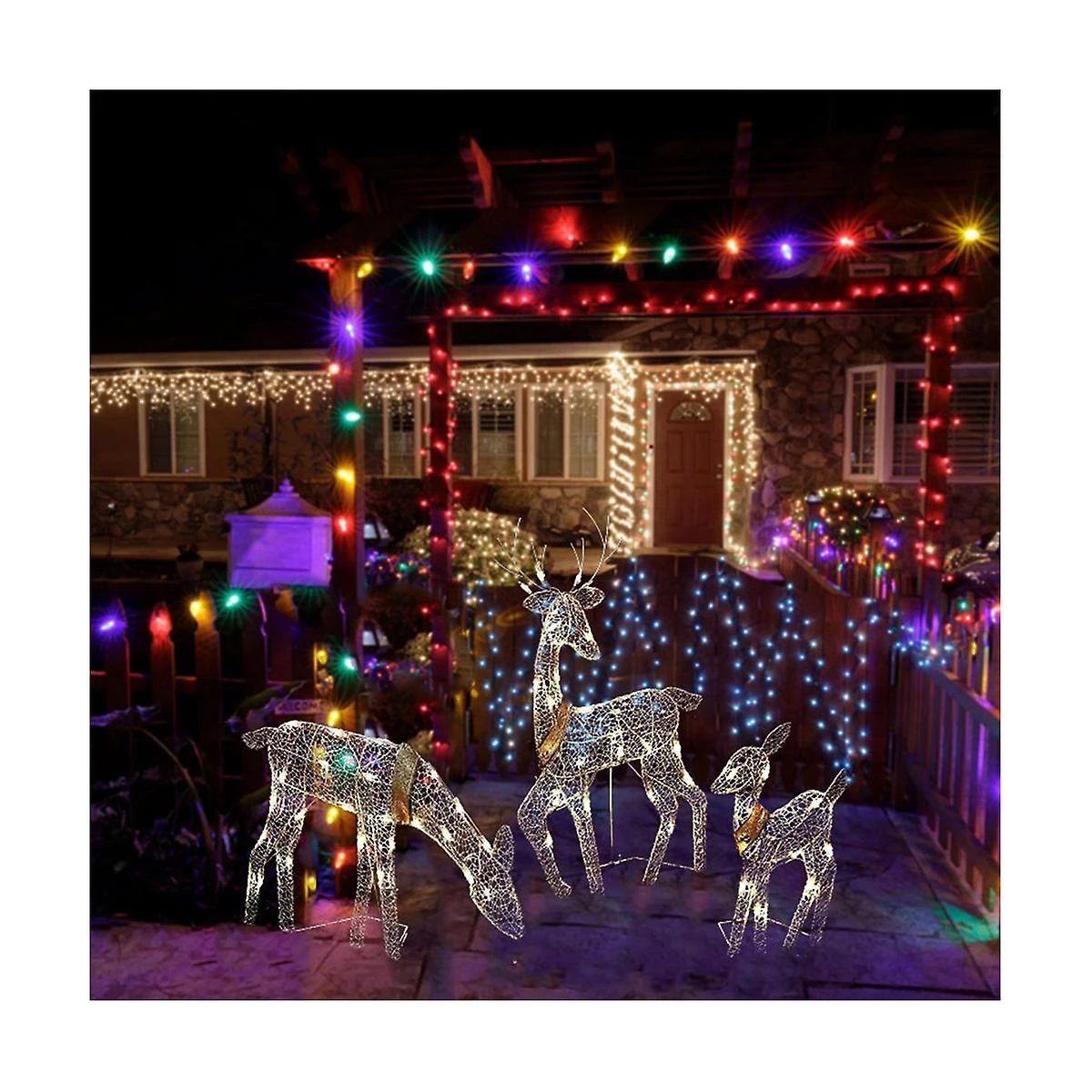 [FESTIVE SCENARIOS] This indoor outdoor Christmas deer family with and delicate bow-knot will create an attractive point in your yard or porch.A perfect gift for a friend or family member for the upcoming Christmas Festival!