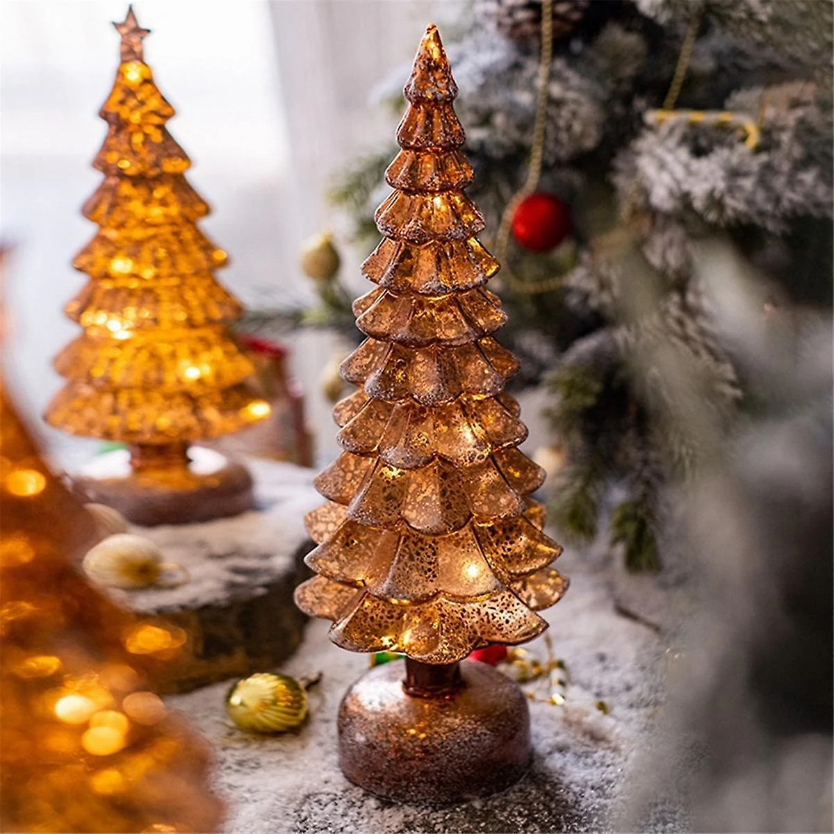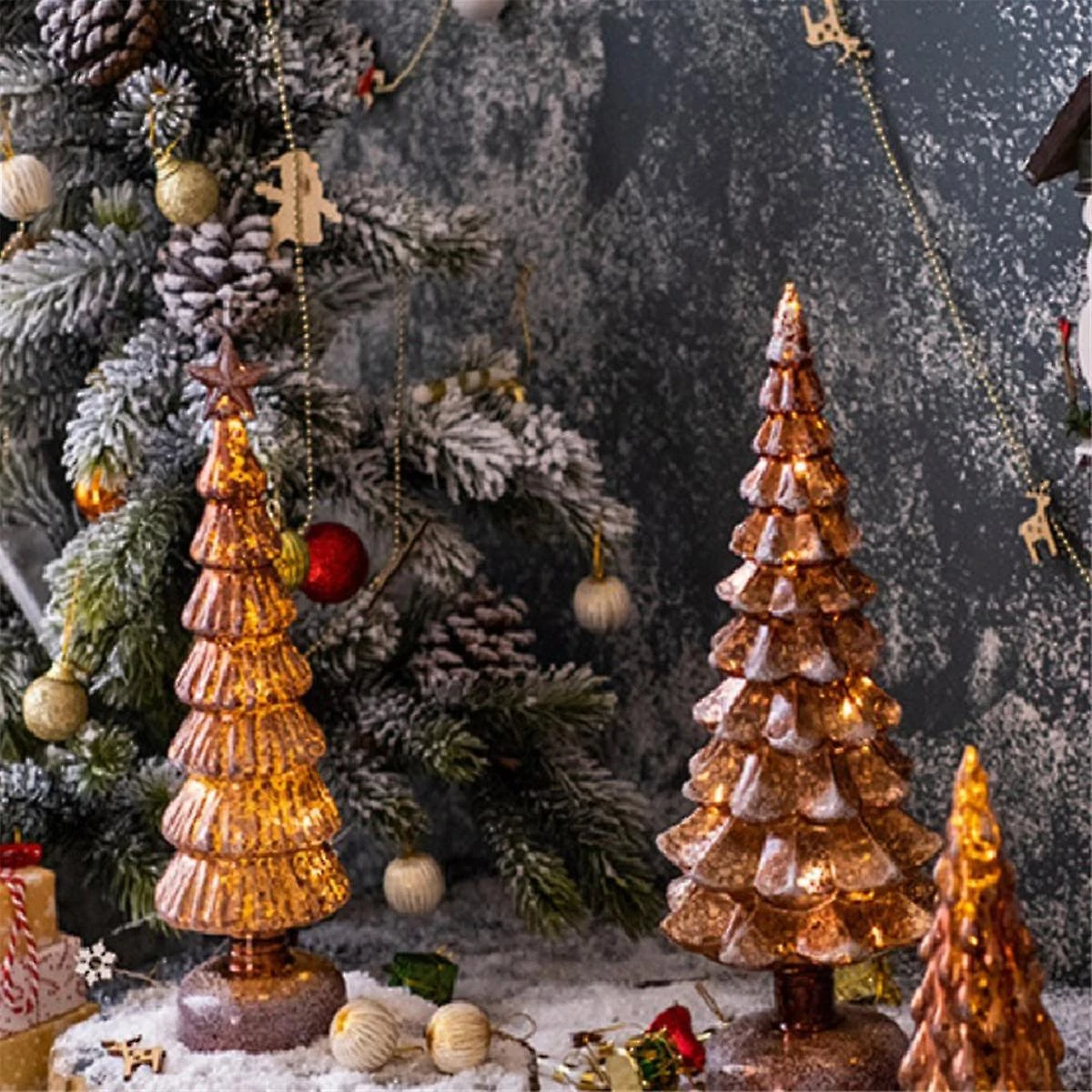 Glass Christmas Tree Light: Crafted from high-quality glass, our luminous Xmas tree desktop decoration is designed for long-lasting use. Experience a unique and enchanting lighting effect that will add a special touch to your holiday decorations.