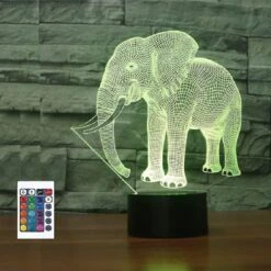Shen 3d Elephant Remote Control 16 Color Night Lights Illusion Acrylic Led Table Bedside Lamp Children Bedroom Desk Decor Birthday Christmas Gift Toy