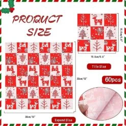 60pcs Disposable Christmas Napkins, Christmas Tree And Reindeer Cocktail Napkins Decorative, 33x33cm