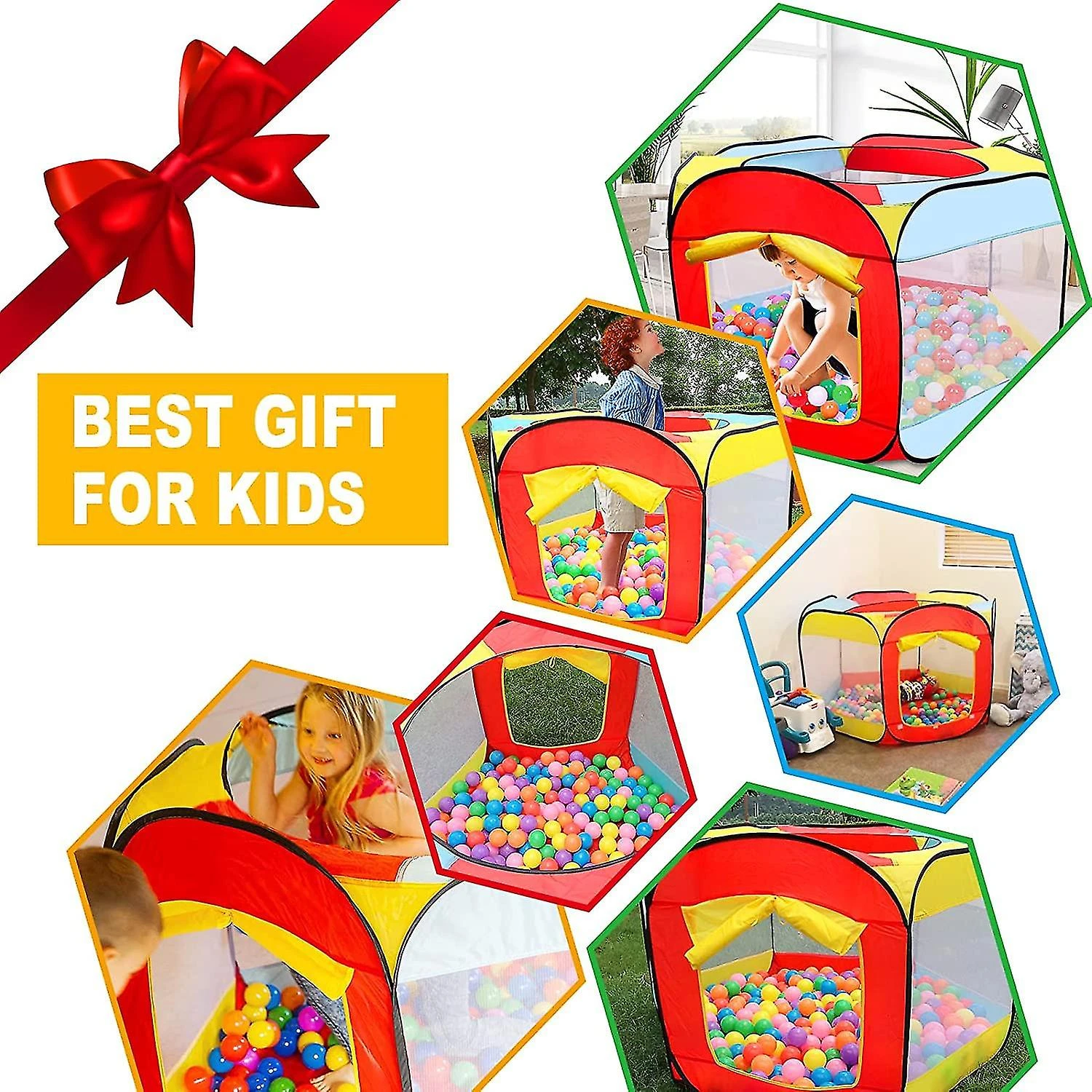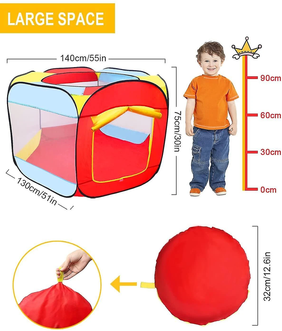 LARGE SPACE: Measures 140*130*75cm/55” x 51”x 30”; Plenty of room to play Features 6 large mesh windows for better visibility as well as fabric doors to keep the balls inside the ball pit. Doors feature a clip option to keep it rolled up whenever you want. Endless Hours of Fun: Kids will be attracted to this colorful hexagon themed ball tent and love to climb at the door. In this 6-sided playhouse, you can see the fun of your kids rolling, jumping and watching. DURABLE AND SAFE FOR CHILDREN: Our big playhouse is made with durable fabric , free from harmful chemicals and safe for children including toddlers and toddlers, great for indoor and outdoor play. Easy to Assemble and Replier: Why struggle with complicated theaters? Inset design makes setup easy. Includes a special twist storage option for folding flat and a handy zippered bag when not in use. ENHANCE CREATIVITY AND IMAGINATION: Thanks to its opening roof, this baby ball pit is easy to fill with ocean balls Develop baby’s coordination and independence. Perfect for birthday parties, picnics, parks, playgrounds. Give it as a Children’s Day gift to girls and boys aged 1-8. Note: No Balls