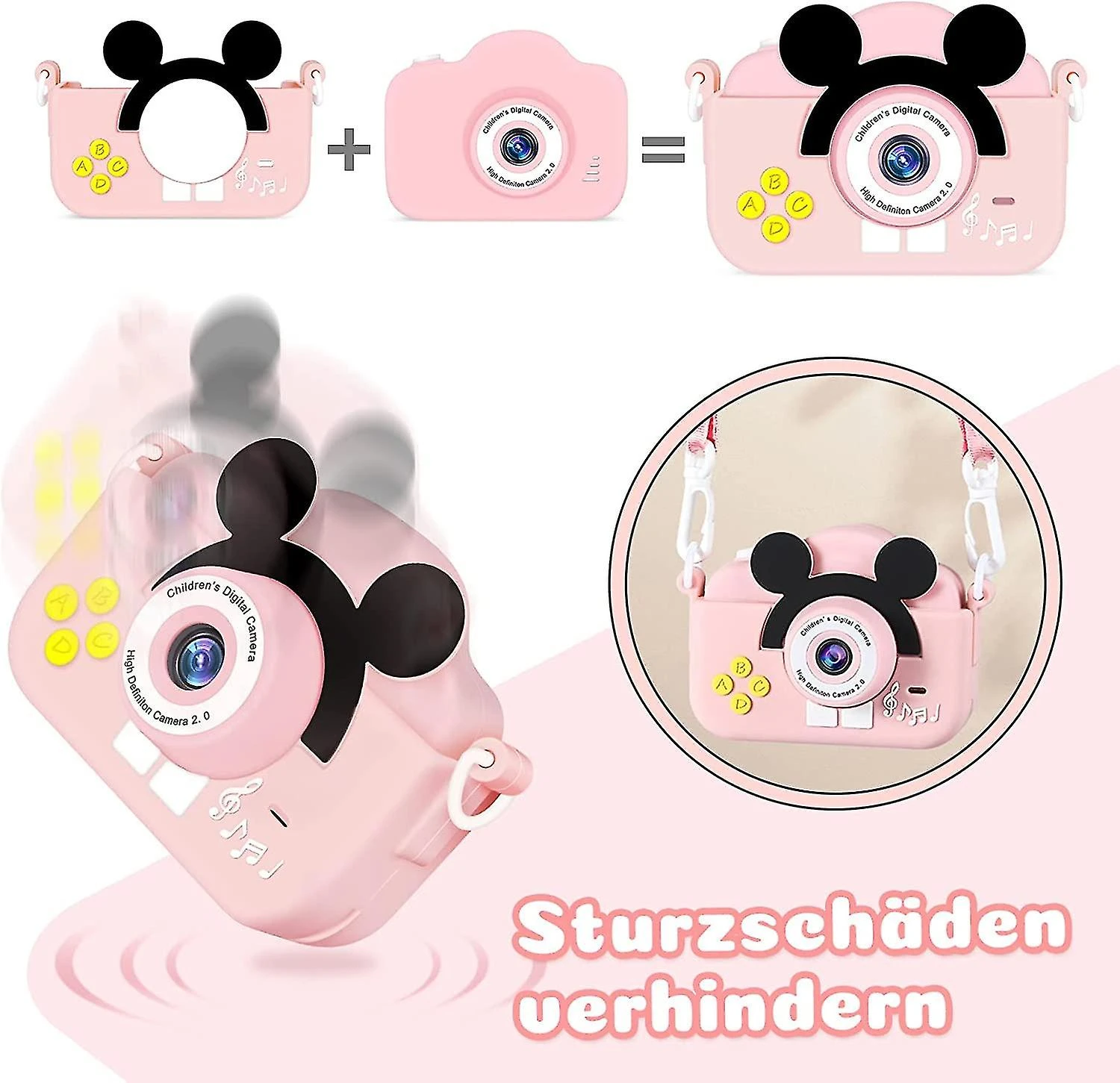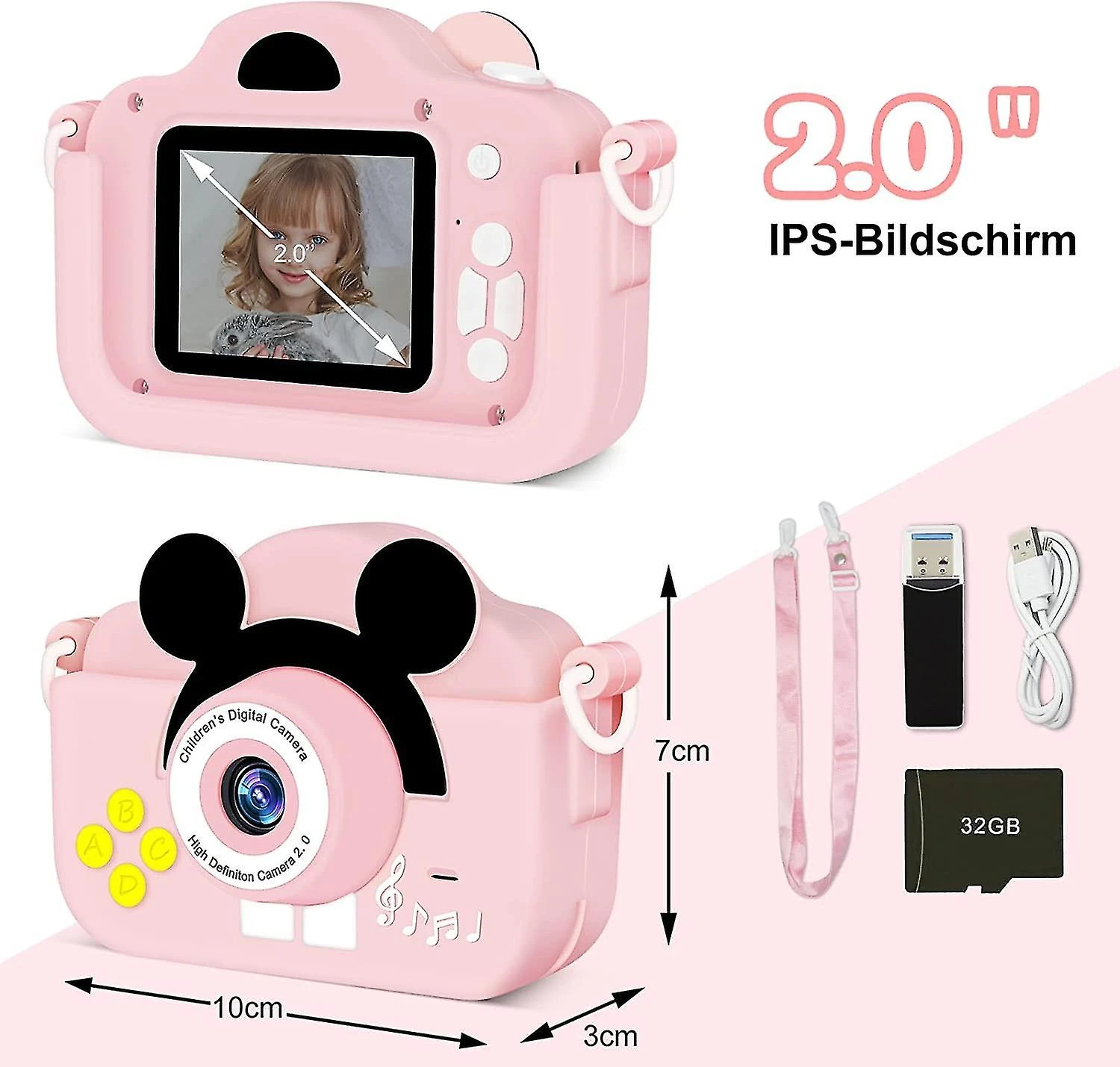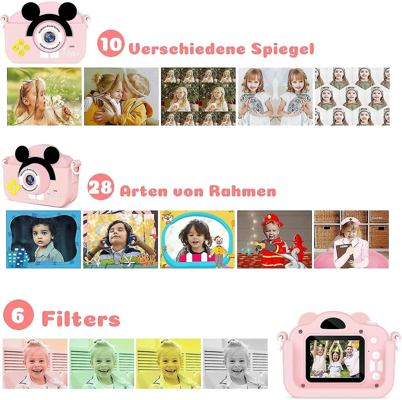 This kids photo camera supports video, time-lapse and date setting, and has many photo frames and filters to meet all kinds of needs in different situations. Built-in puzzle game and music bring more joy to children. This camera for kids features HD 2.0 inch IPS eye protection screen to avoid damaging your child’s eyesight.