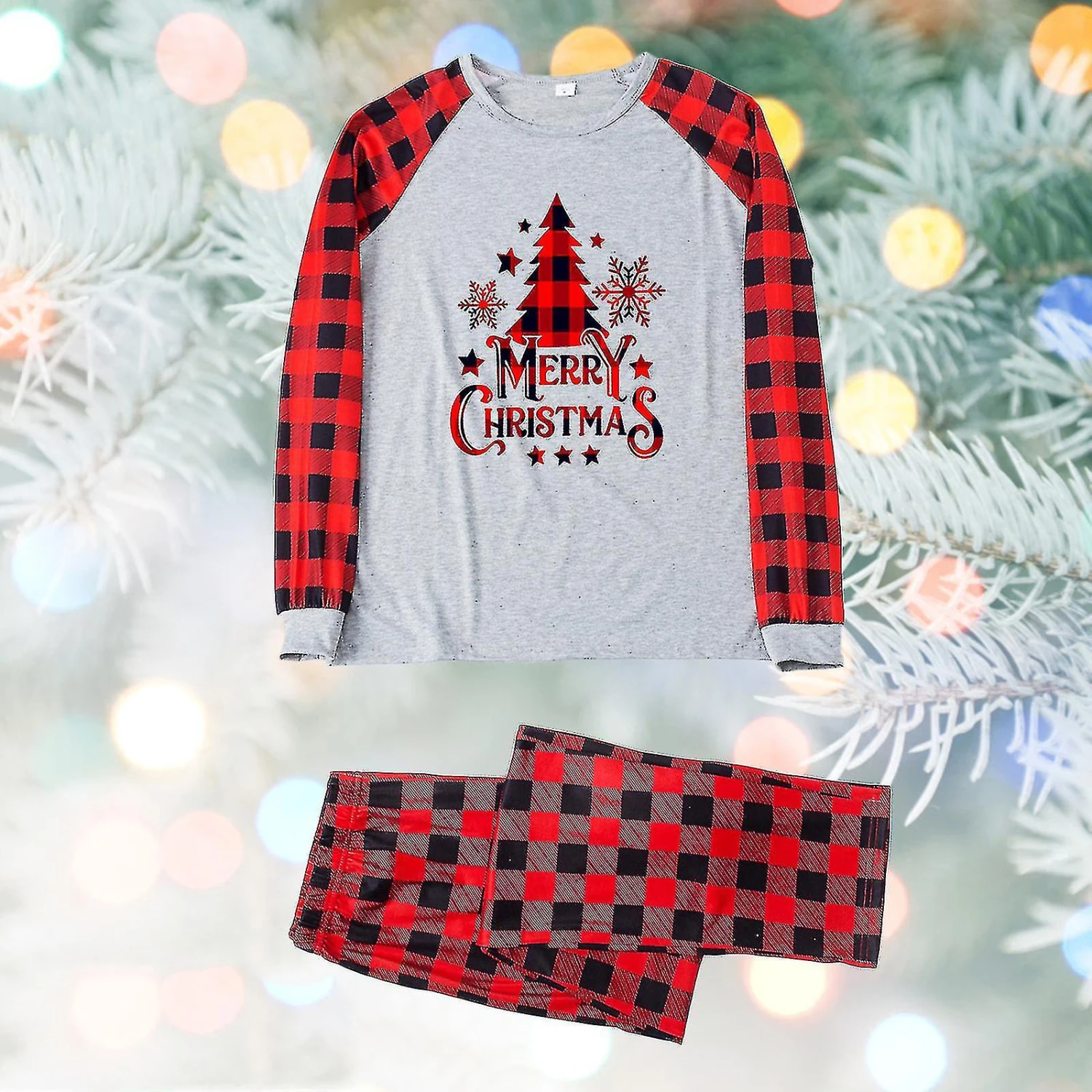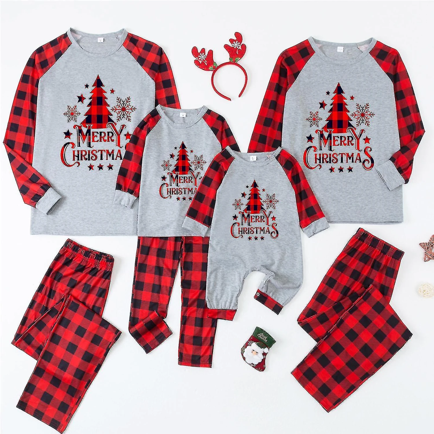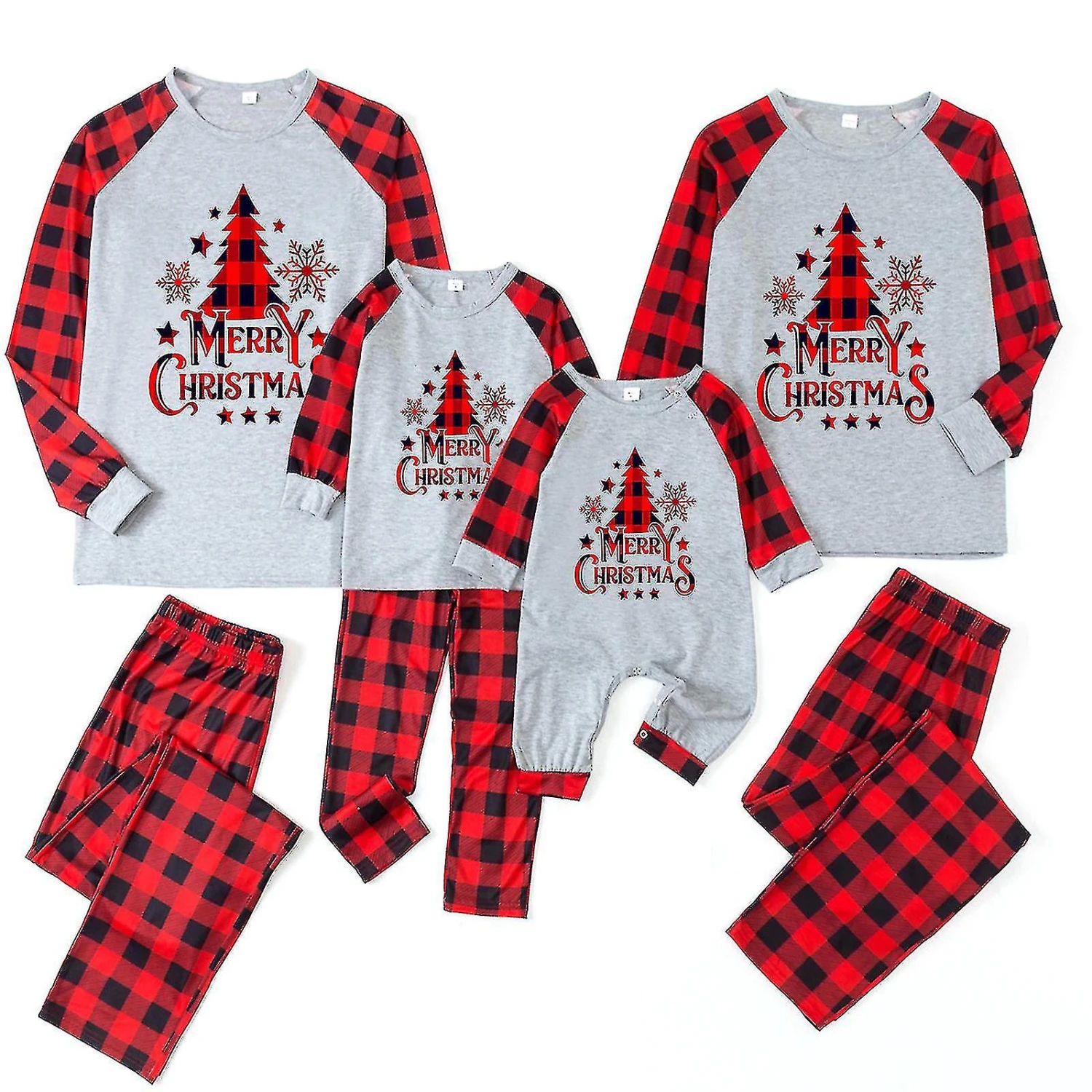 This Christmas pajama set for the whole family features a classic Christmas-themed pattern, featuring a long-sleeve top and red and black checked stretch pants;