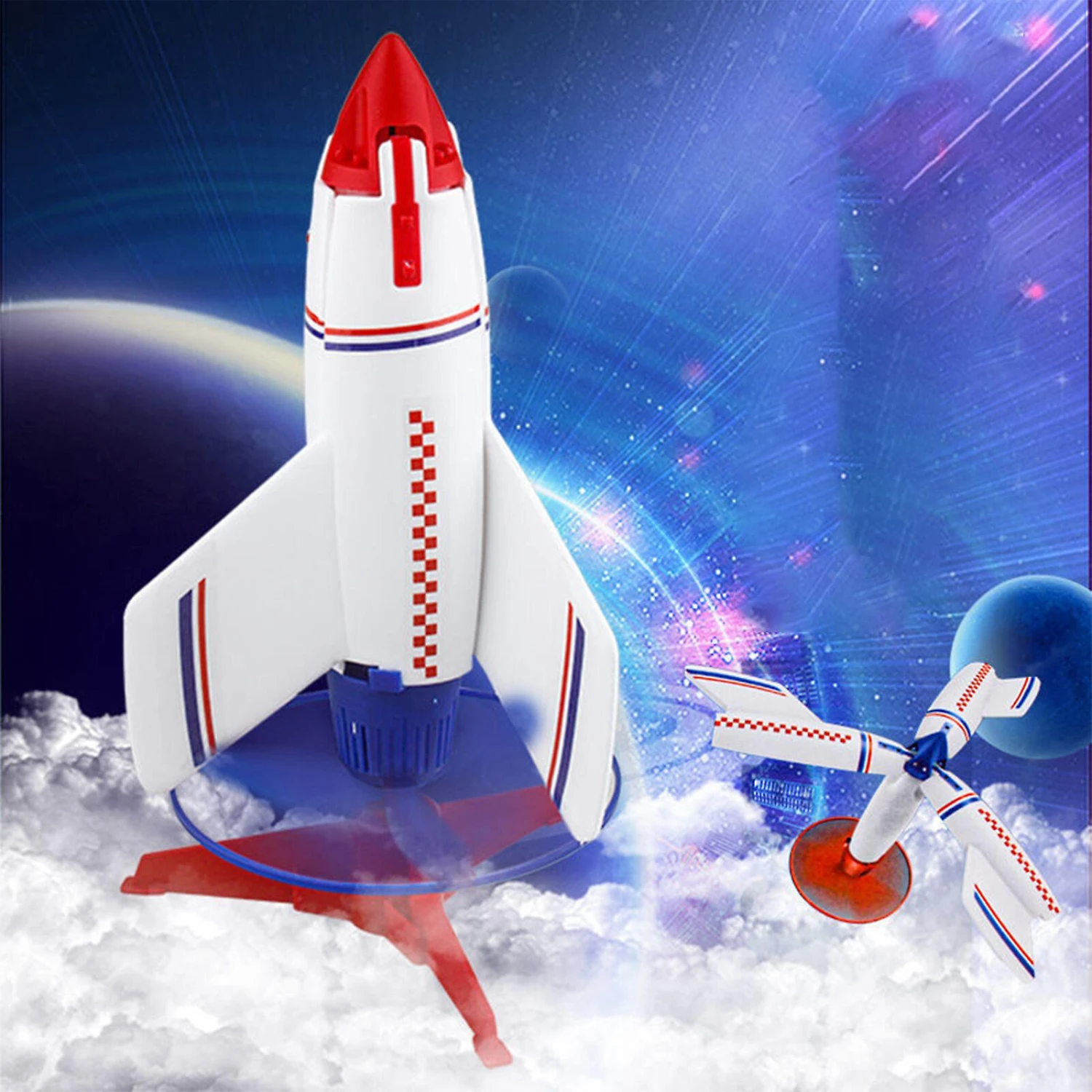 2. Tough Material & Safe Landing: Our rocket launcher toy is made of EEP foam material, this not only makes the rocket lighter to fly higher but also more durable. After the flying rocket reaches the max altitude, the wings opens automatically and the rocket will fall slowly. No need to be afraid of hurting your kids and breaking the rocket when landing.