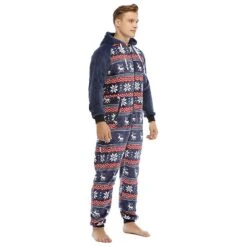 Men’s Flannel Christmas One Piece Pajamas Homewear(a Variety Of Styles Can Be Selected) XXL Style 2